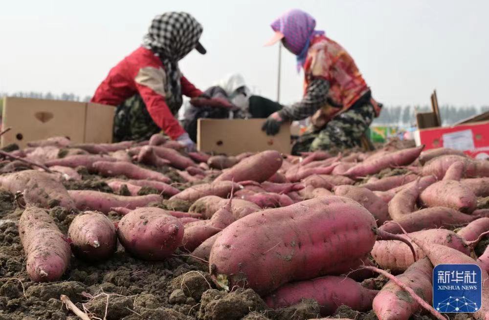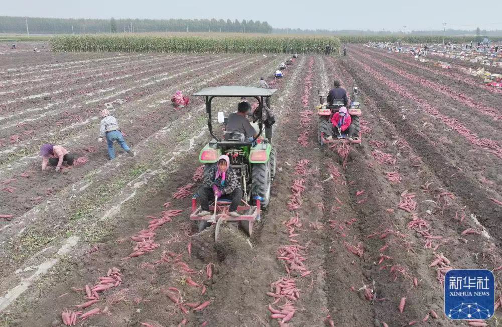 金秋时节,河北省唐山市丰润区的农民抢抓农时收获红薯新品种蜜薯,田间呈现出一派丰收的景象。近年来,当地政府引导农民采取“合作社+农户”的模式,因地制宜种植蜜薯、烟薯等营养价值高、口感好的新品种红薯,促进农民增收,助力乡村振兴。