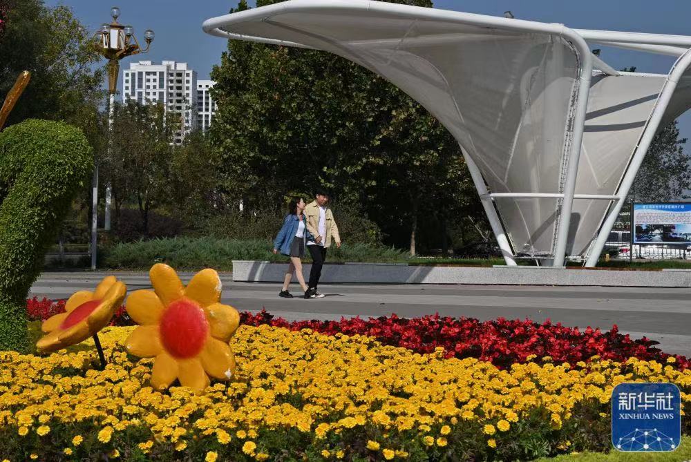 10月15日,市民从唐山市海港经济开发区城市休闲驿站走过。