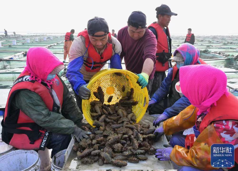 近日,河北省唐山市曹妃甸区利用深海网箱养殖的海参进入收获期,养殖户开始捕捞、分拣加工海参,供应市场。近年来,曹妃甸区积极探索利用深海大水面、抗风浪网箱养殖海参,取得良好的经济效益。据介绍,目前该区深海网箱养殖海参面积达2200多亩。