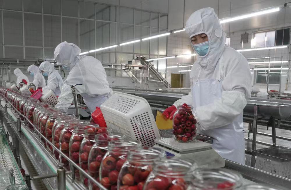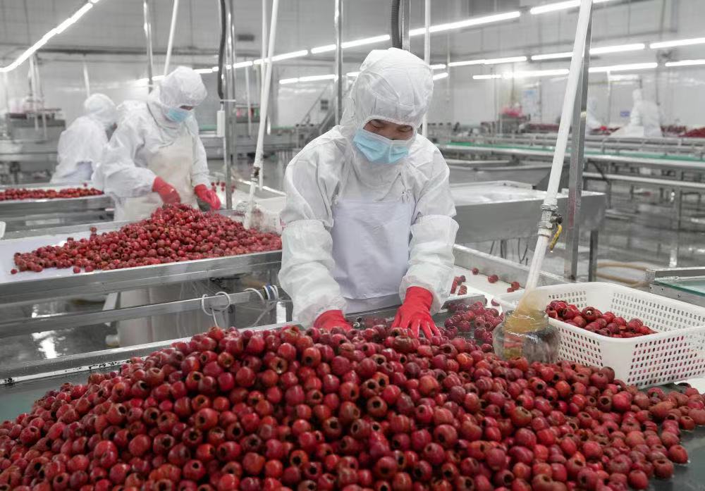 11月14日,工人在河北省遵化市一家食品企业的山楂罐头生产车间工作。新华社记者杨世尧摄