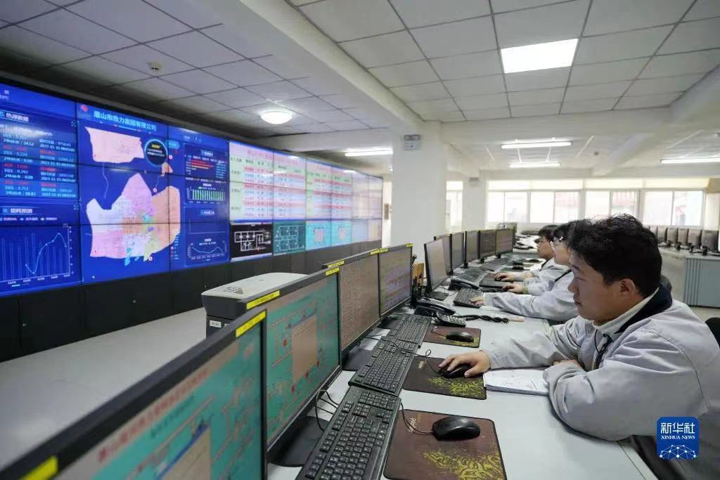 11月15日,唐山市热力集团有限公司调度指挥中心的工作人员在监测供热系统运行情况。