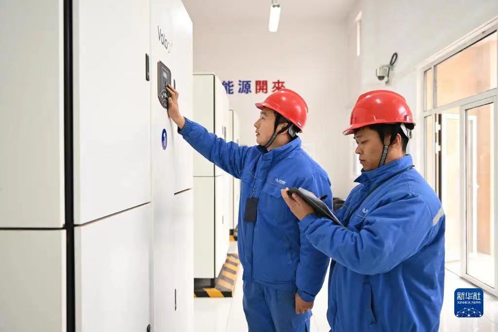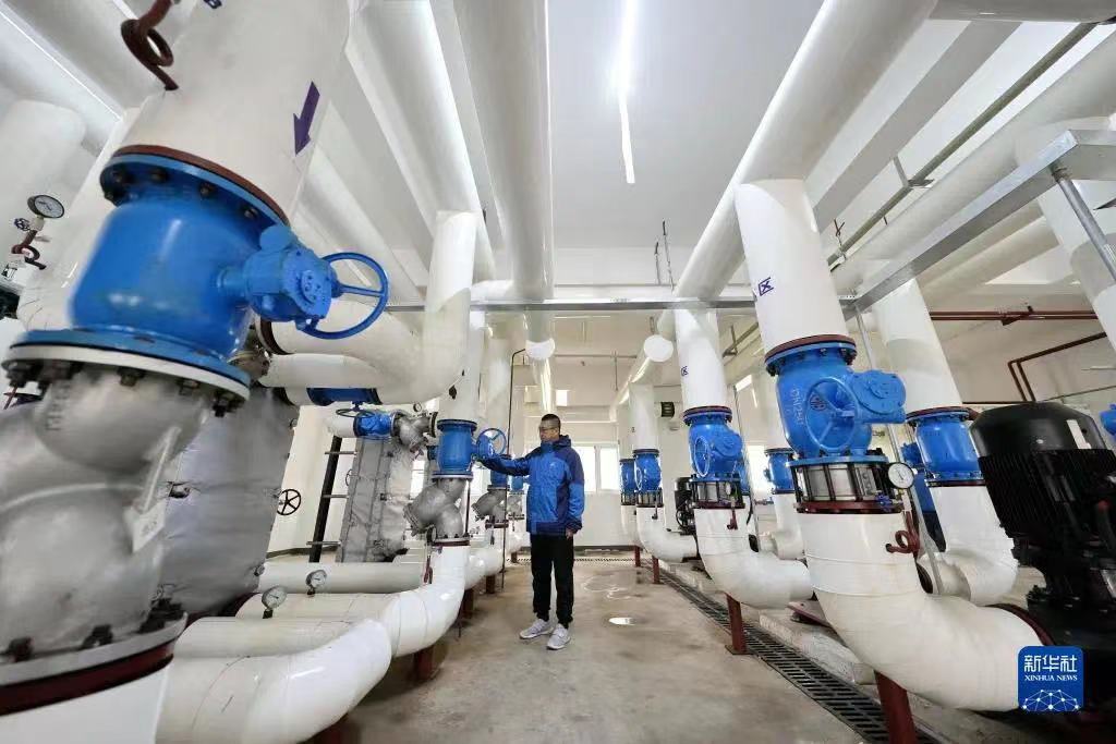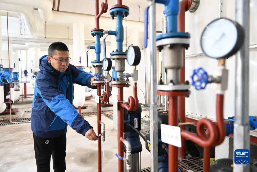 11月15日,唐山港能投智慧能源有限公司工作人员在唐山市路南区一处供热站内检查供暖设备。