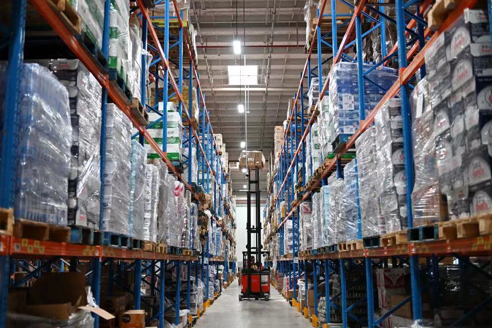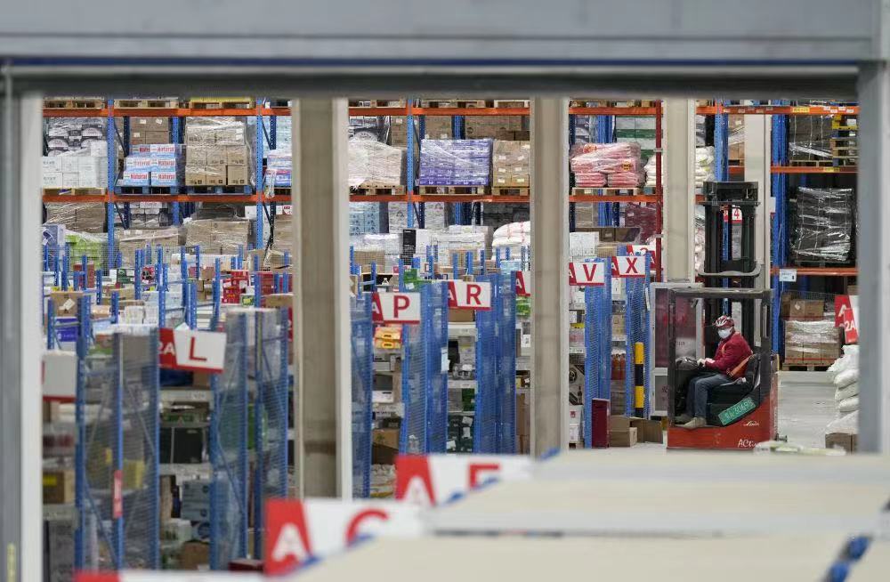 11月16日,在普洛斯唐山丰润物流园,京东物流的叉车在运输货物。 新华社记者 牟宇 摄