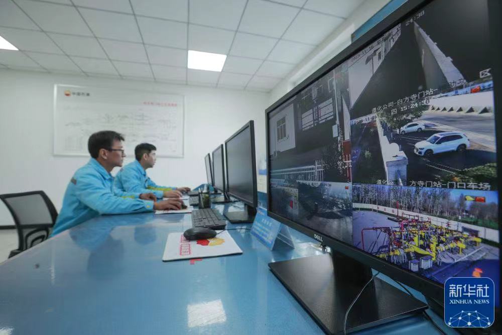 11月16日,位于遵化市的一天然气门站的工作人员在监控室观察设备运行情况。