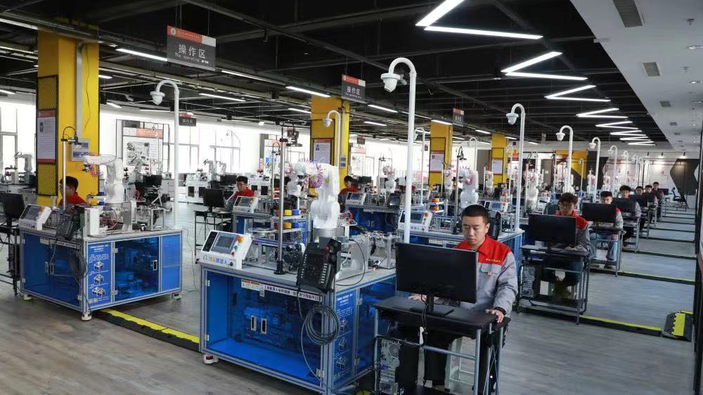 唐山工业职业技术学院的学生正在进行机器人操作技能训练。(受访者提供)