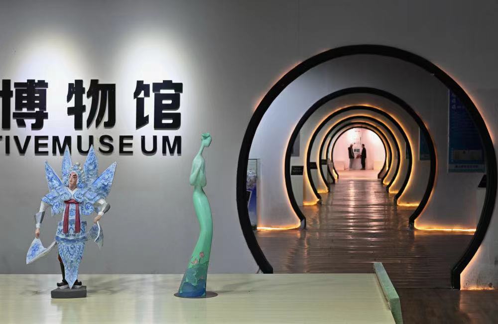 ↑11月21日,游客在唐山市开平区陶瓷文创产业园内的唐山骨质瓷创意博物馆参观。