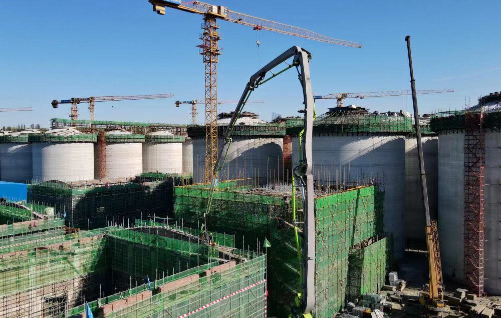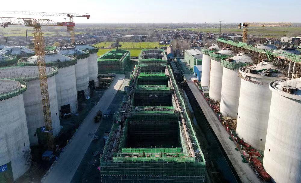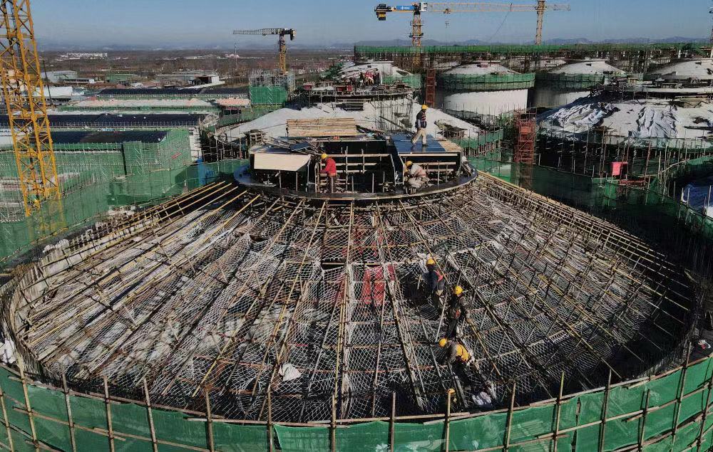 近日,位于河北唐山市丰润区的粮食安全应急储备及食品深加工全链化综合生产基地项目,一期工程建设中的浅圆仓进入封顶阶段,平房仓和综合楼项目进入主体浇筑、回填阶段。据介绍,该项目分三期建设,全部建成投运后,将形成以粮食储备为主链,粮食收购、粮油加工、食品加工和销售于一体的综合性“粮食小镇”。 新华社记者 杨世尧 摄