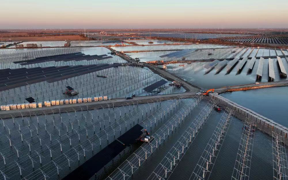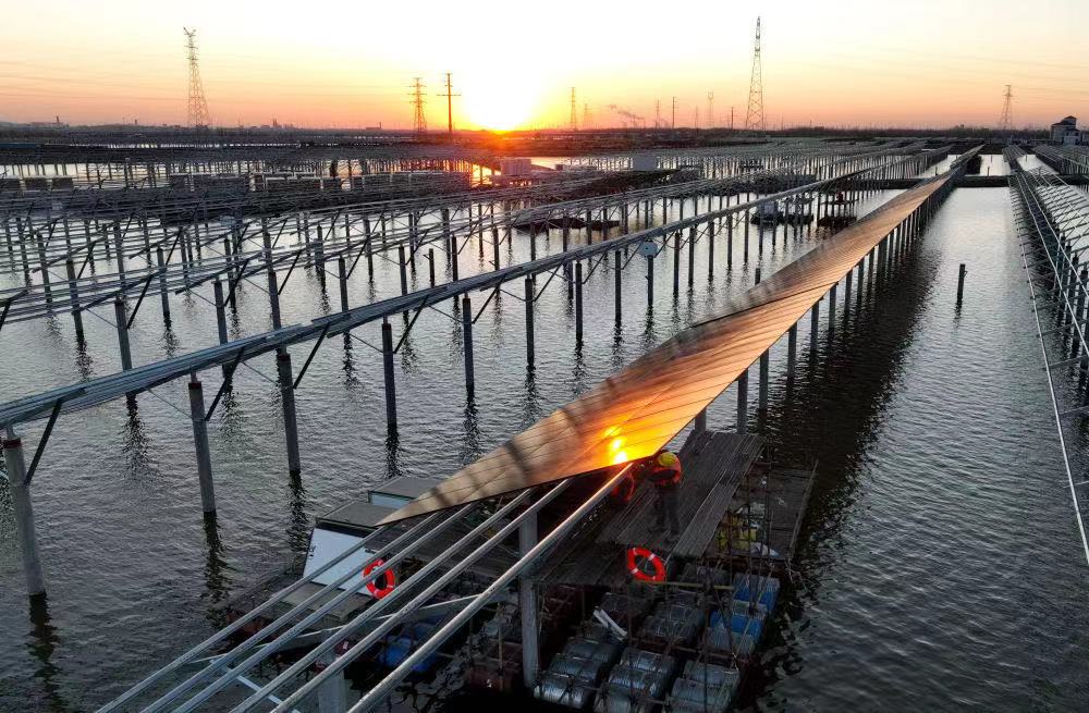 近日,河北省唐山市丰南区黑沿子镇渔光互补项目建设正在按照节点要求稳步推进。据介绍,该项目设计装机容量500兆瓦,项目建成后将实现渔业养殖和绿色发电融合发展,在提供清洁能源的同时,提高农民收入,助力乡村振兴。