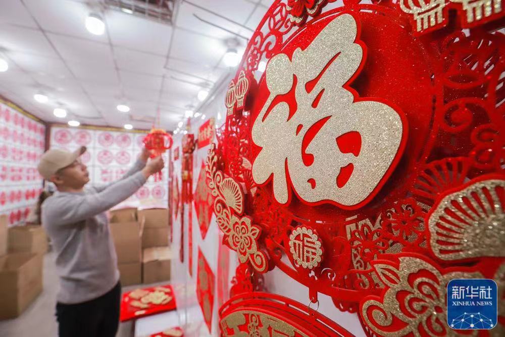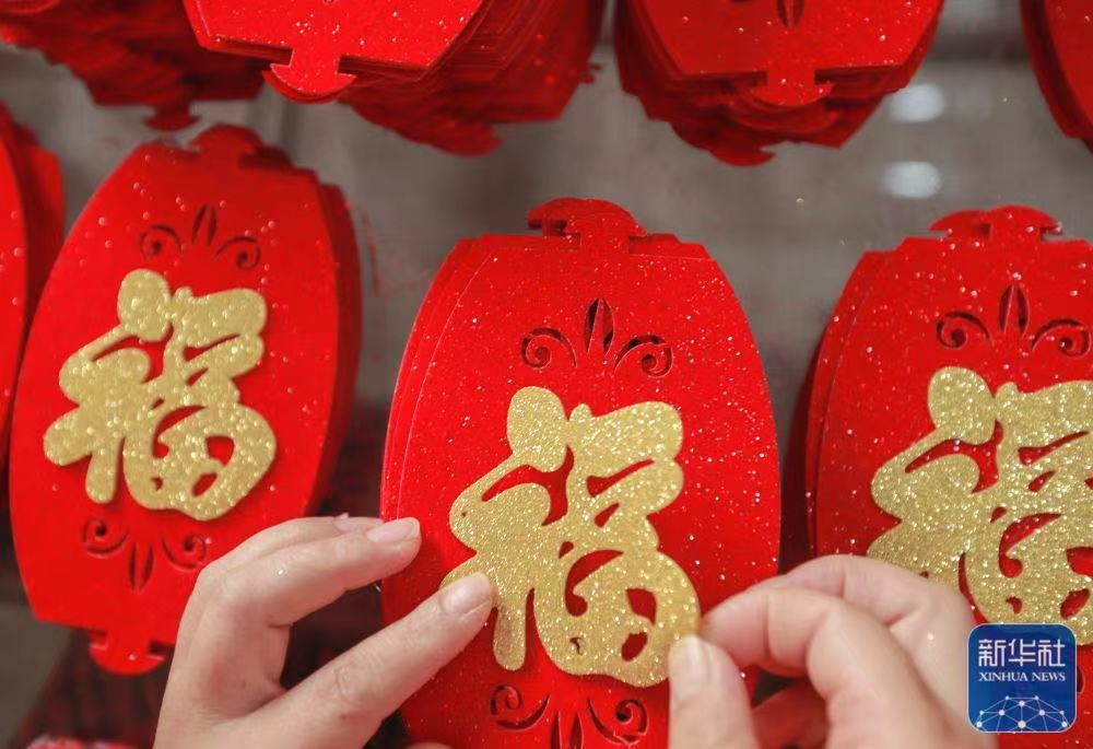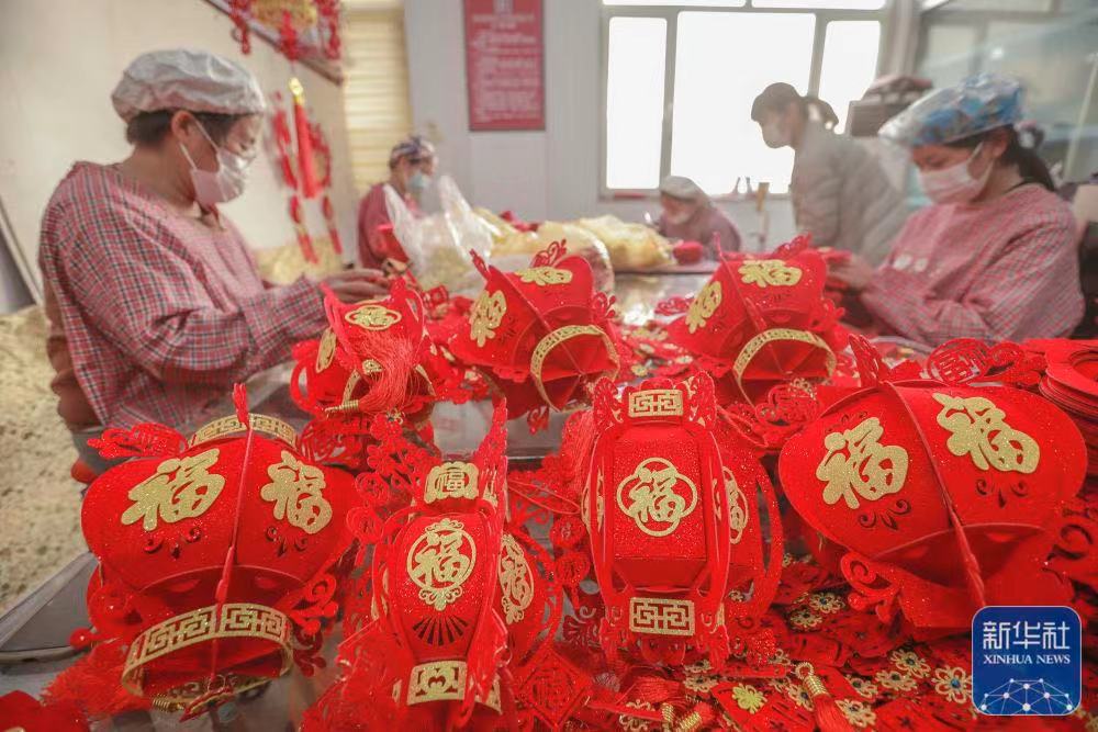 随着新年临近,河北省遵化市节庆饰品加工企业工人加紧制作各种饰品,供应新年市场。