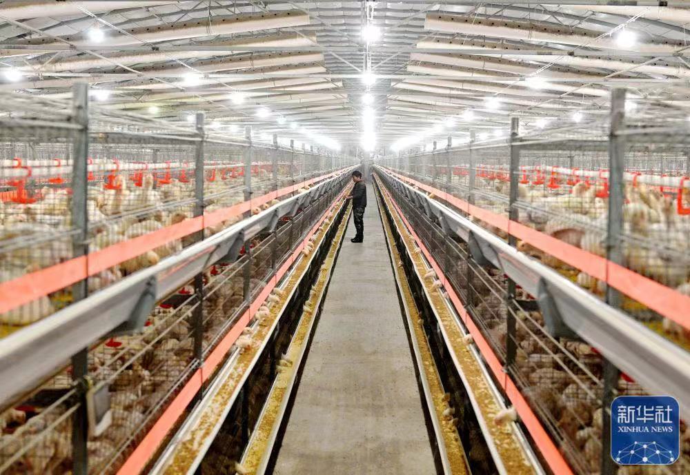 ↑12月16日,河北省滦州市滦城街道办事处杨家院村一家肉鸡养殖合作社的社员在鸡舍内工作。