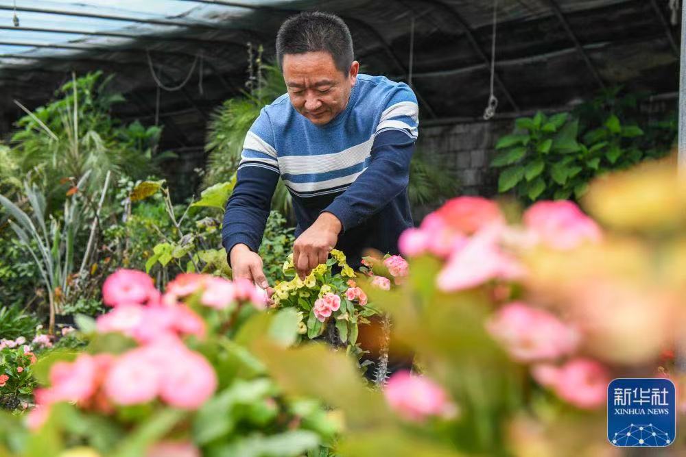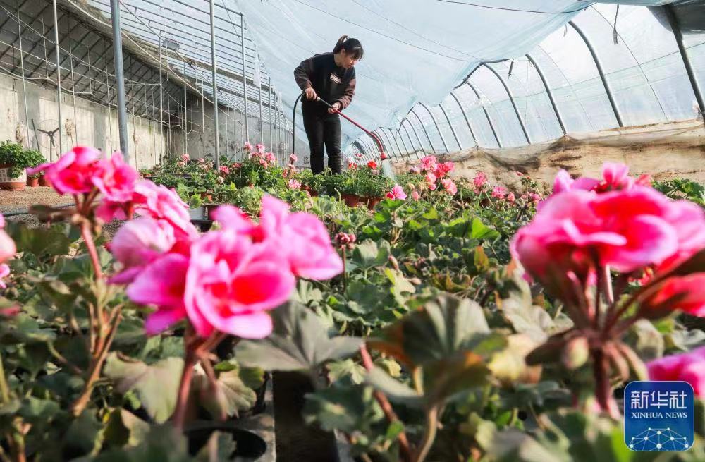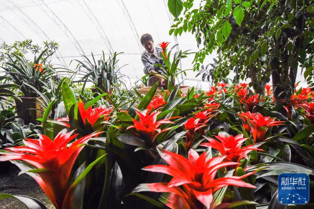 12月18日,遵化市马兰峪镇农民在花卉大棚劳作。