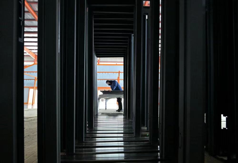 ↑12月20日,工人在河北省唐山市丰润区一家金属门企业的生产车间工作。新华社记者 杨世尧 摄