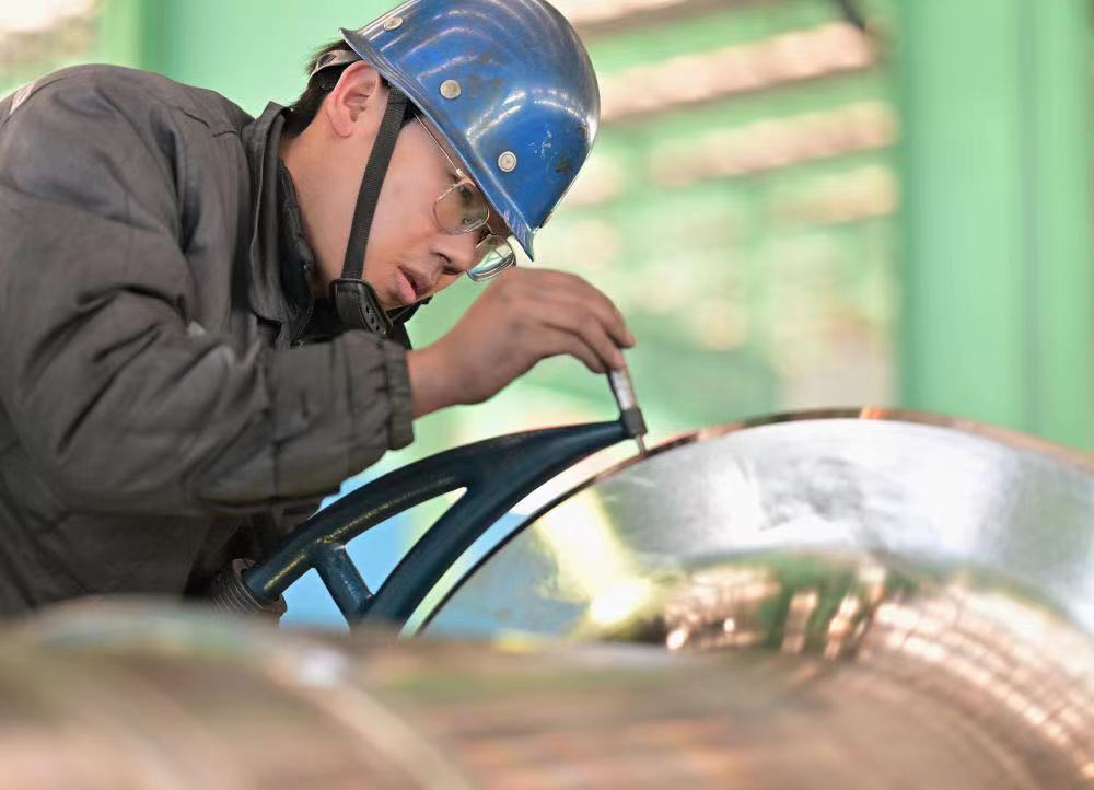 ↑12月20日,工人在河北省唐山市丰润区一家轧辊企业的生产车间工作。新华社记者 杨世尧 摄