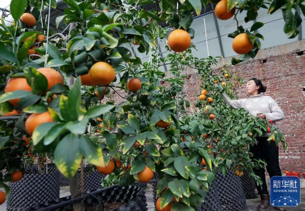 ↑12月26日,河北省滦州市九百户镇一家生态农业园的工人在采摘沃柑。