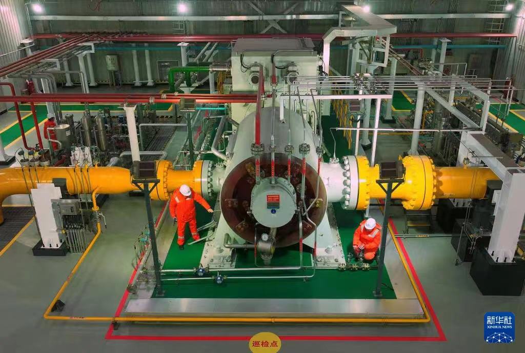 12月29日,工人在国家管网唐山联络压气站内工作(无人机照片)。