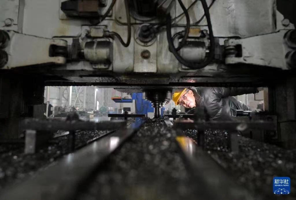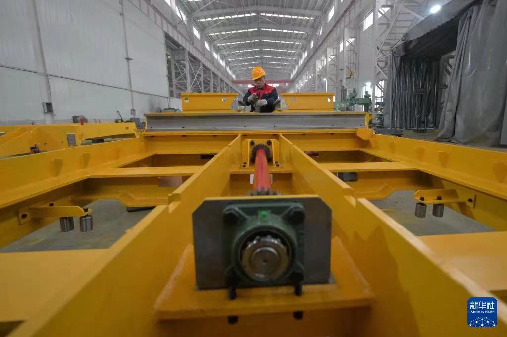 12月30日,工人在唐山市曹妃甸区一家装备制造企业车间工作。