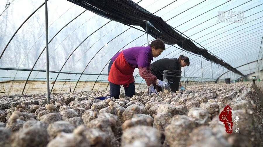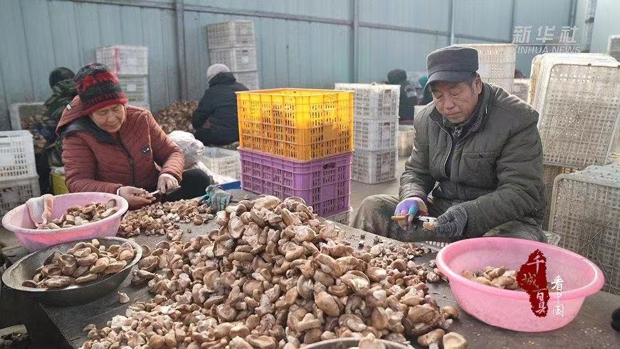 当下正值出菇旺季,在河北省遵化市平安城镇的香菇大棚内,一个个菌袋整齐有序,一朵朵蘑菇如花一样绽放,菇农们忙着采摘、装筐、运送,一派丰收的繁忙景象。