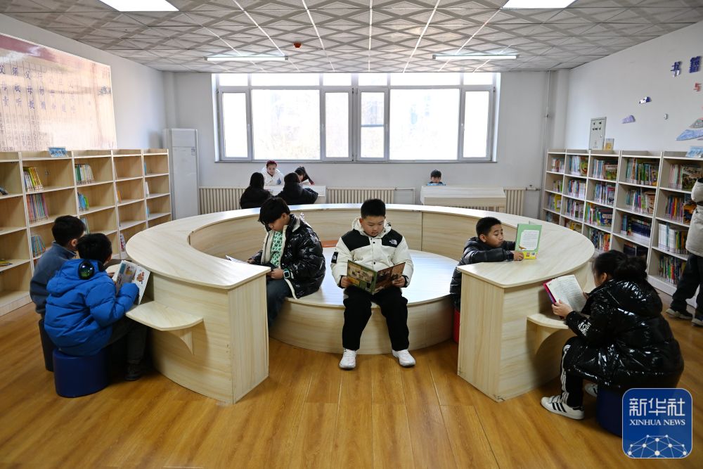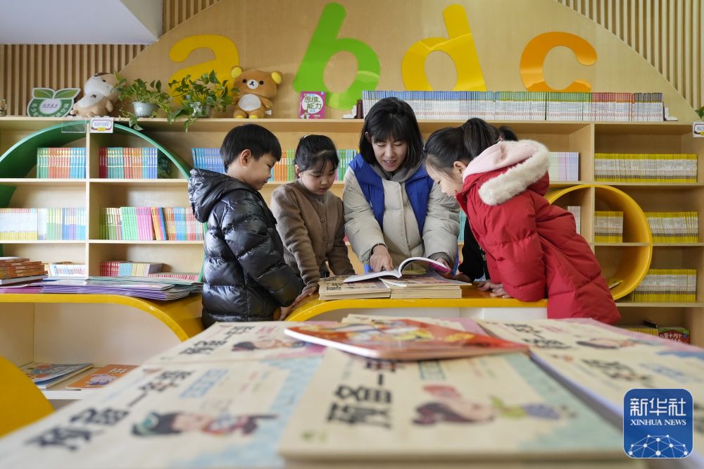 1月18日,志愿者在河北省滦州市一家城市书房内给孩子们读绘本。