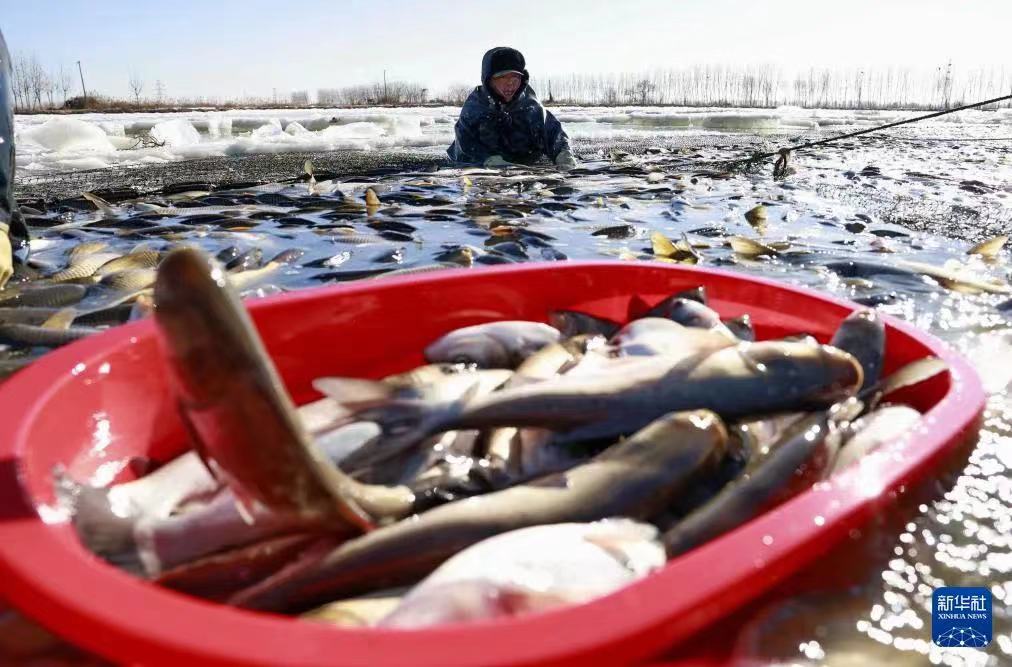 春节临近,河北省唐山市丰南区的淡水鱼养殖户破冰捕鱼,供应节日市场,丰富百姓餐桌。近年来,当地利用丰富的水资源优势,大力发展水产养殖,促进农民增收,助力乡村振兴。